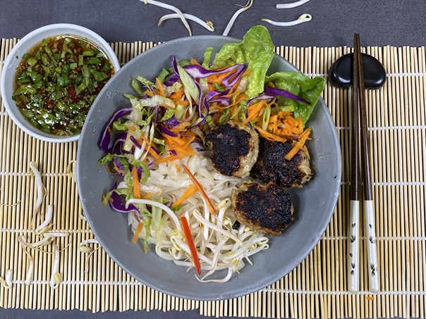 Her hos os, holder vi utrolig meget af asiatiske retter og spiser ofte asiatisk mad - både herhjemme og på rejser. Det er især det thailandske køkken, vi er vilde med men også det vietnamesiske og indonesiske køkken. Vi elsker thaiernes mad, de sunde, sprødstegte grøntsager, supperne, omeletter og forårsruller og den måde, thaierne krydrer deres retter med chili, hvidløg, basilikum, koriander, citrongræs og limeblade. Disse krydderier, sammen med deres saucer såsom soyasauce, fiske- og østerssauce og kokosmælk, giver en harmonisk balance mellem stærkt, sødt, surt og salt. Og så er det lækkert at servere menuer, som thaierne gør, med 4-5 forskellige retter, der supplere hinanden, afsluttet med frugt eller en lille lækker dessert - det er altid en stor succes hos gæster